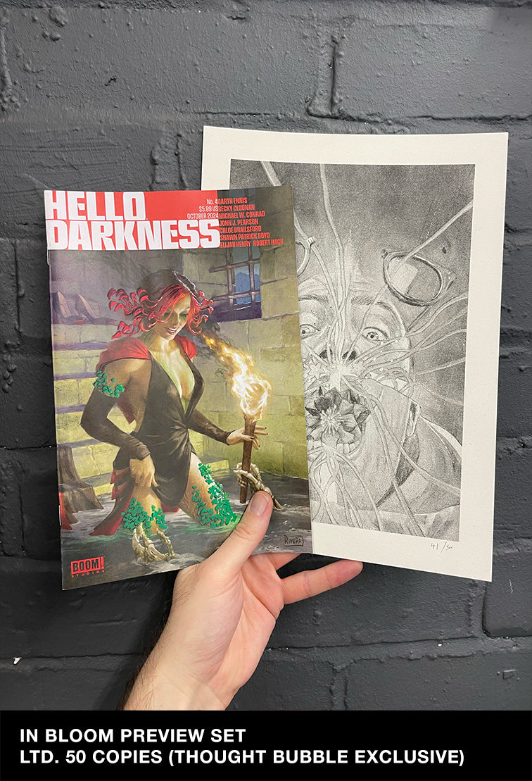 - Hello Darkness #4 (first preview of IN BLOOM), signed by writer Michael Conrad and artist John J. Pearson