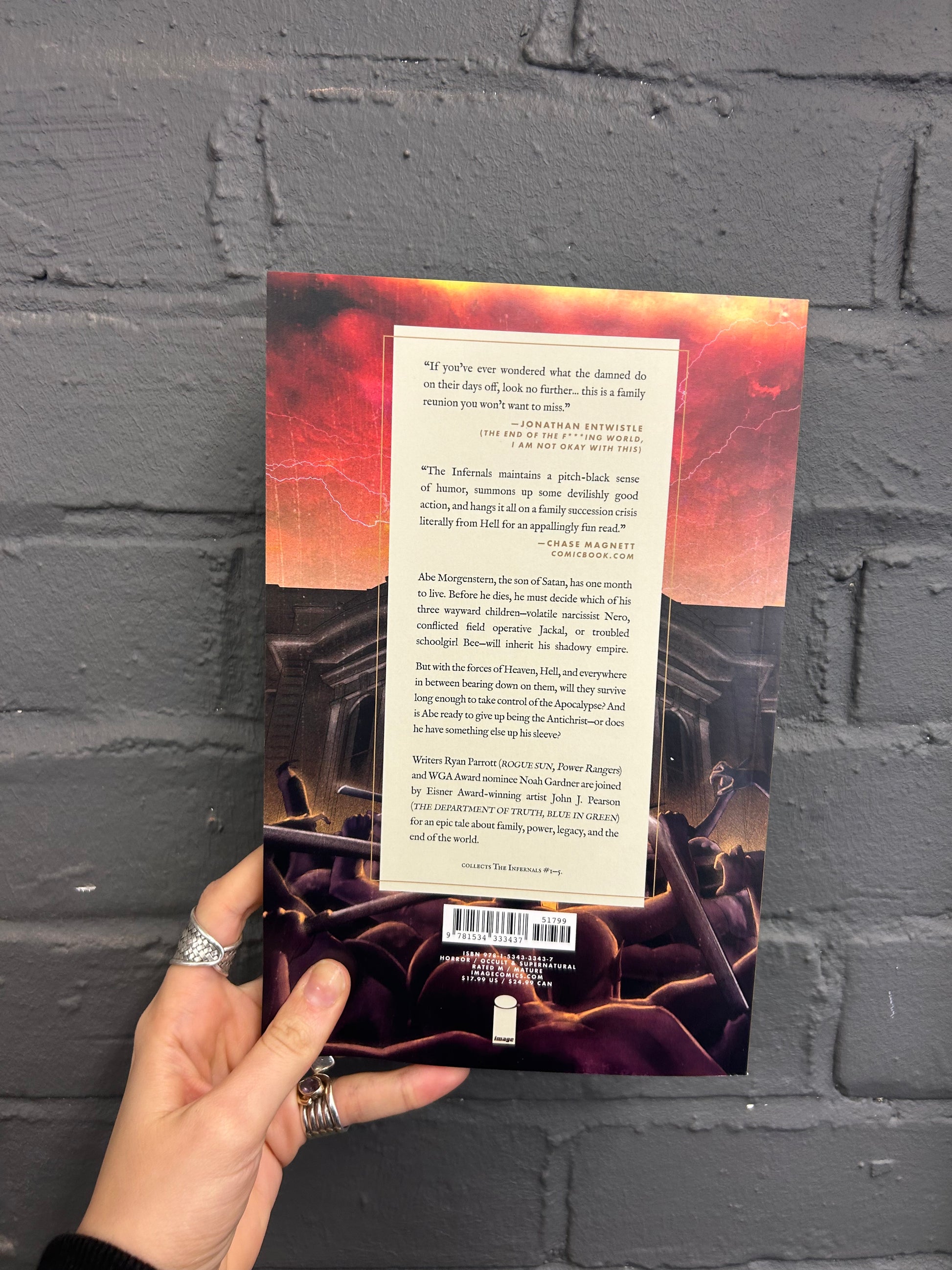 Abraham "Abe" Morgenstern, the son of Satan, has one month to live. Before he dies, he must decide which of his three wayward children-volatile narcissist Nero, conflicted field operative Jackal, or troubled schoolgirl Bee-will inherit his shadowy empire. But will Abe ever be able to truly cede control of the Apocalypse? Or does the Antichrist have something else up his sleeve...